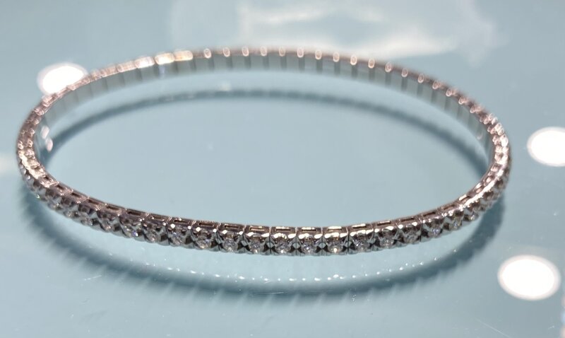NOVITA' , Bracciale tennis realizzato su misura, in oro bianco, elasticizzato estendibile non necessita di chiusura.