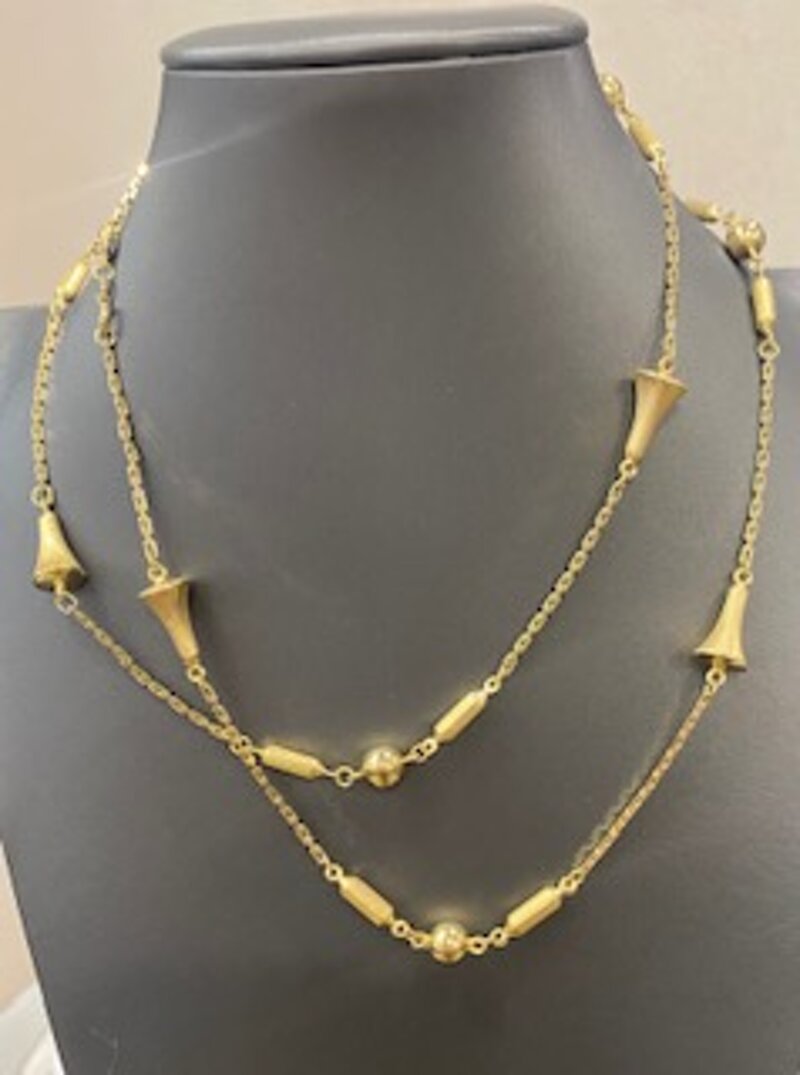 Collana con barilotti e coni rovesciati realizzata in oro giallo 18 carati lunghezza 80 cm , introvabile in queste ottime condizioni