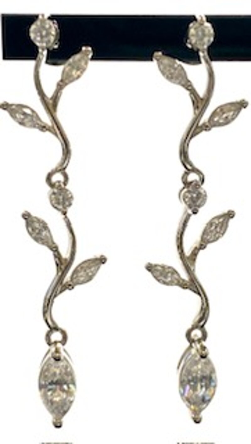 ORECCHINI PENDENTI IN ARGENTO 925, MOTIVO FLOREALE CON ZIRCONI TAGLIO GOCCIA